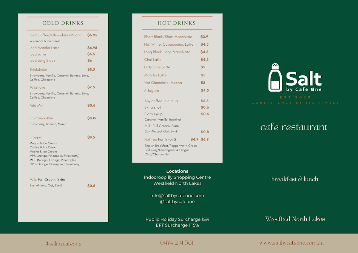 What truly elevates Salt by Cafe One is their commitment to freshness, generous portions, and friendly, attentive service. The cozy atmosphere invites both solo visitors and groups to relax and savor every bite in a lively yet comfortable setting.